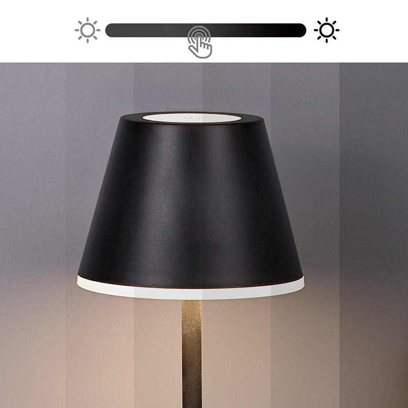 Montážní bezdrátová led stolní lampa je dotykové tlačítko v horní části středu stínidla. Lze ovládat spínač světel a převod tří barev světla, stejně jako na obrázku dole