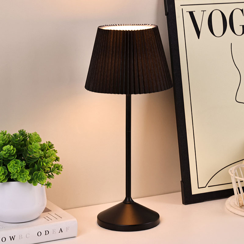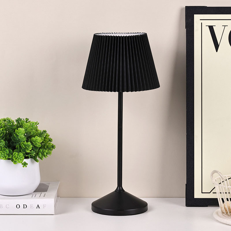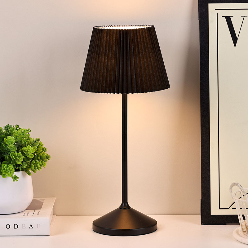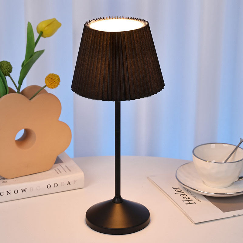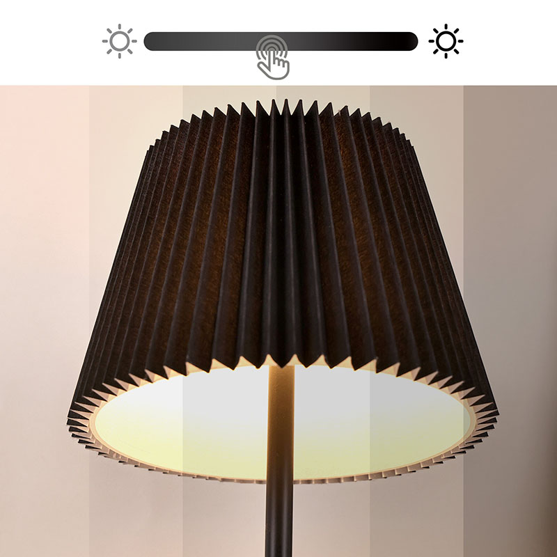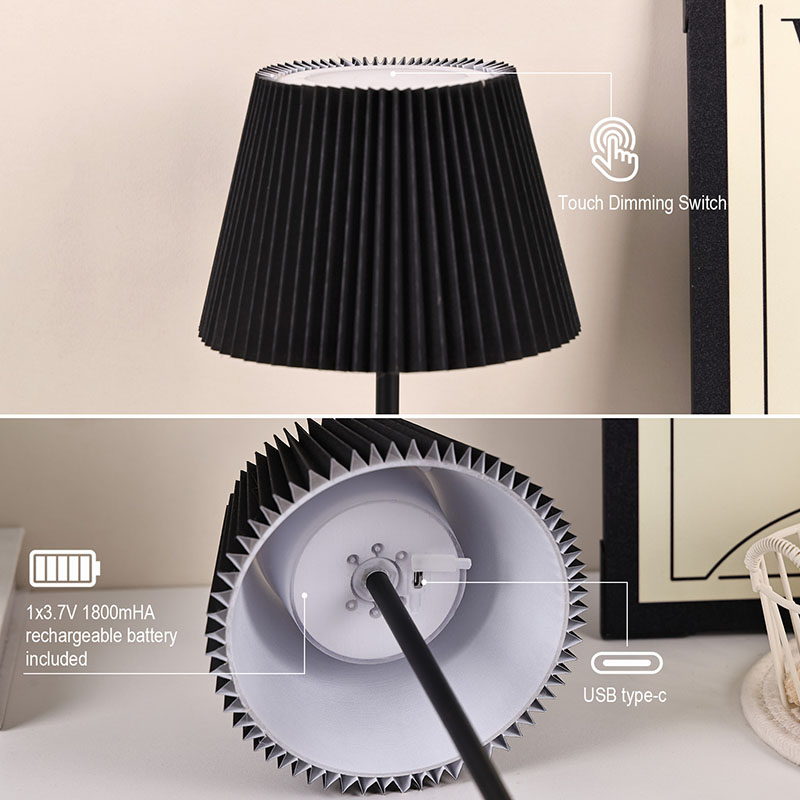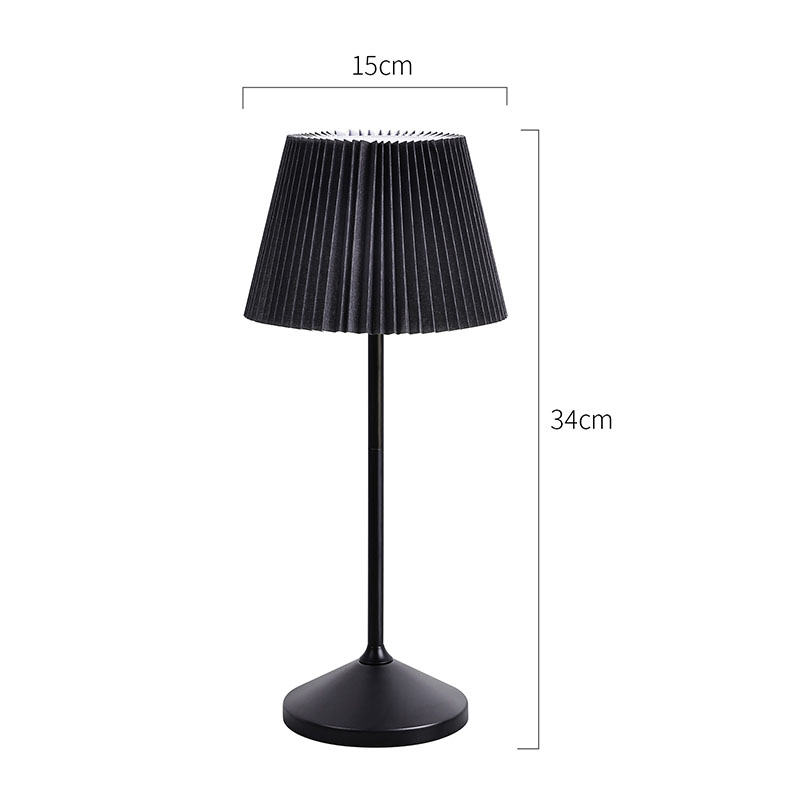 Dotkněte se přepínače stmíváníČerný látkový kryt má vynikající texturu, jemné a vrstvené záhyby jako nádherné umělecké dílo, které celé lampě dodává eleganci a romantiku. Kovová základna vyzařuje houževnatost a jemnost, je pevná, odolná a má dobrou stabilitu, doplňuje látkový potah