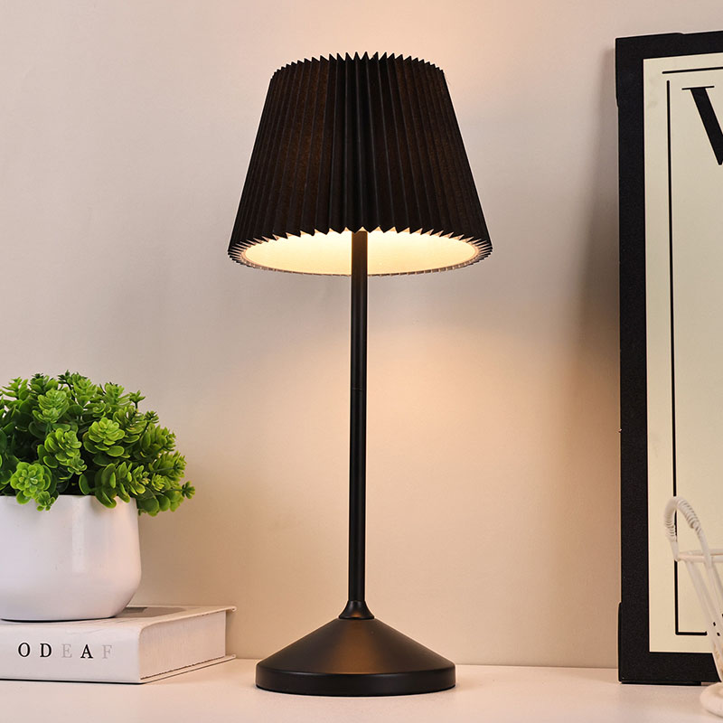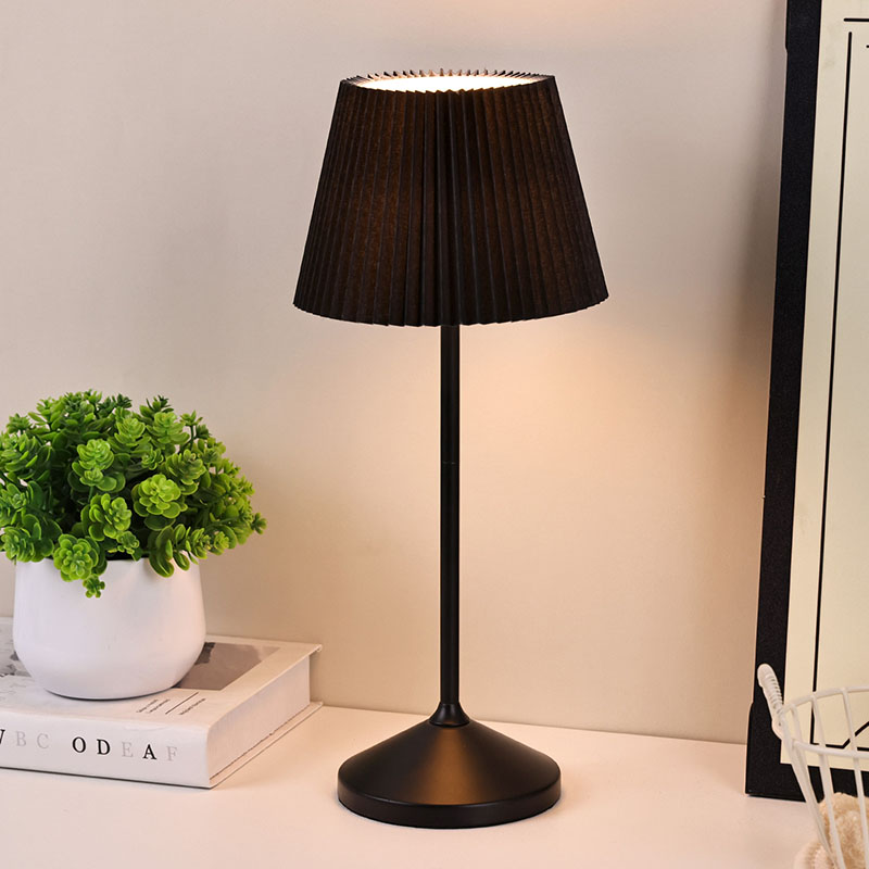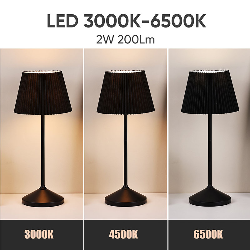 Černá LED stolní lampa s látkovým stínidlem je vybavena třemi úrovněmi funkce stmívání, které mohou splnit vaše různorodé potřeby v různých scénářích. Když chcete vytvořit klidnou a uklidňující atmosféru spánku, stačí ji jemně nastavit na nejnižší úroveň a měkké teplé světlo bude jako jasný měsíc, vrhá klidnou záři a doprovází vás ke klidnému spánku Černá LED stolní lampa s látkovým stínidlem má také vestavěnou baterii, která svým promyšleným designem výrazně zvyšuje její pohodlí při používání