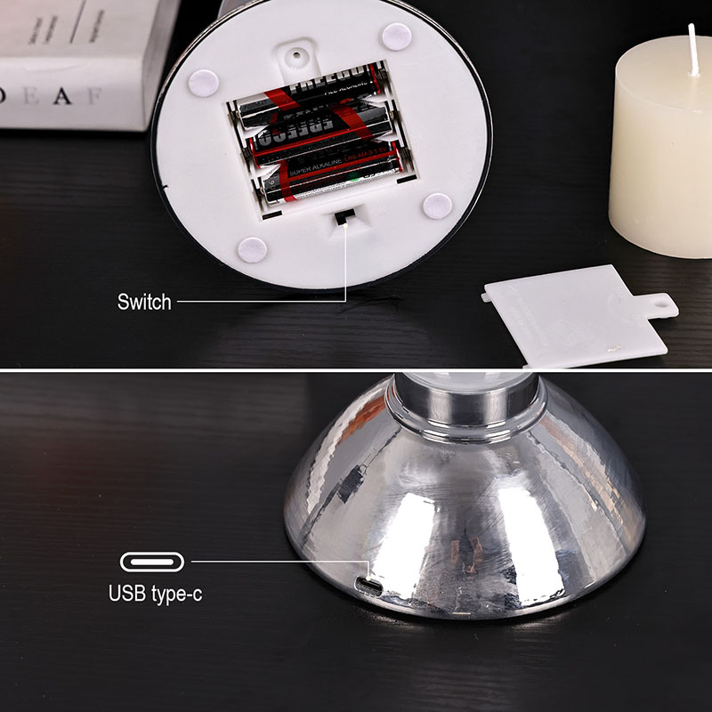 3 AAA baterieNově navržené noční světlo se stínem svíčky má na vrchní straně dekorativní svíčku, kterou lze zapálit, a uprostřed průhlednou skleněnou lahvičku, která obsahuje kapalinu se specifickým složením. Uvnitř kapaliny to vypadá jako mraky a mlha plující na obloze, velmi podobné simulační práci. Spodní část je kovová základna, kterou lze použít se 3 bateriemi AAA. Zamračené noční světlo se svíčkou je velmi vhodné pro vnitřní nebo hotelovou výzdobu a lze jej umístit také do dětských pokojů s dobrým léčivým účinkem na náladu