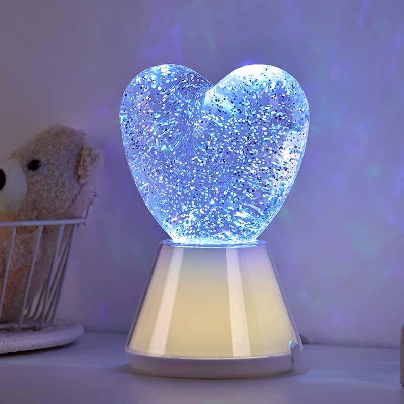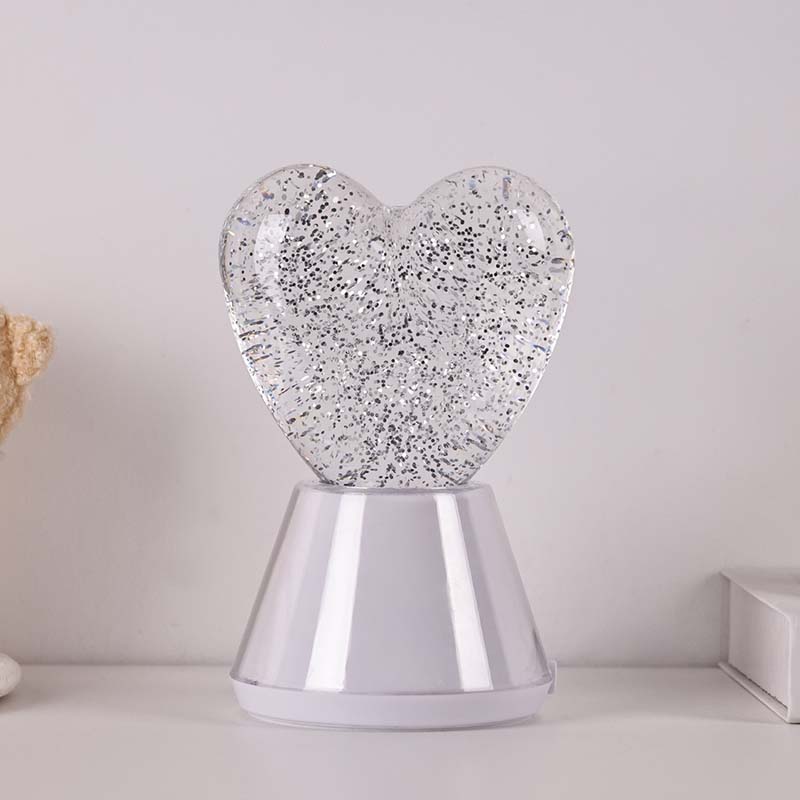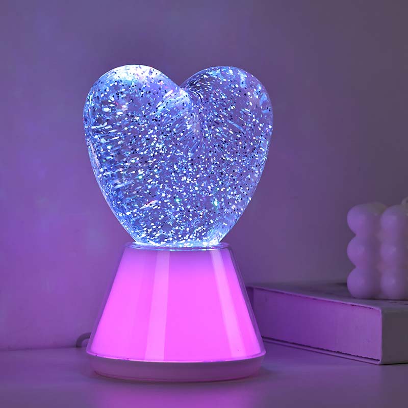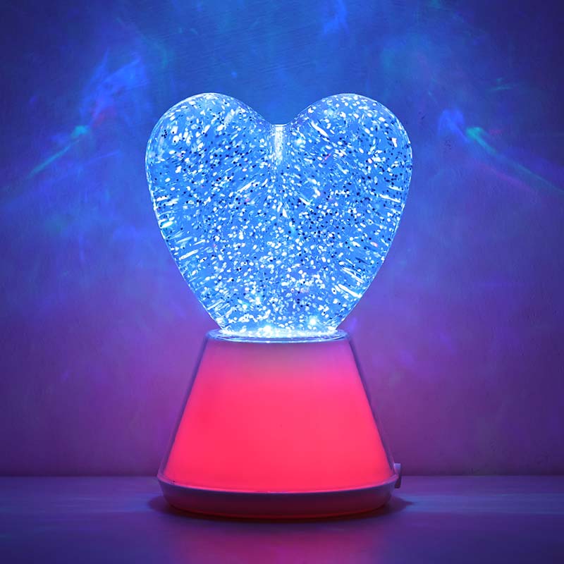 Barvu měnící tekuté třpytivé noční světlo se stínem srdce. obsahuje znamenitou skleněnou kouli naplněnou tajemnou tekutinou, ve které plavou třpytivé flitry. Zázračně mění barvu tekuté třpytivé noční světlo se srdíčkovým odstínem, jako by tančilo v kouzelném světě.