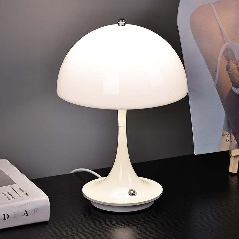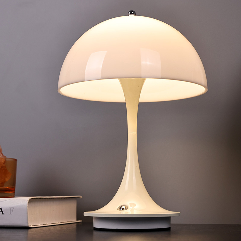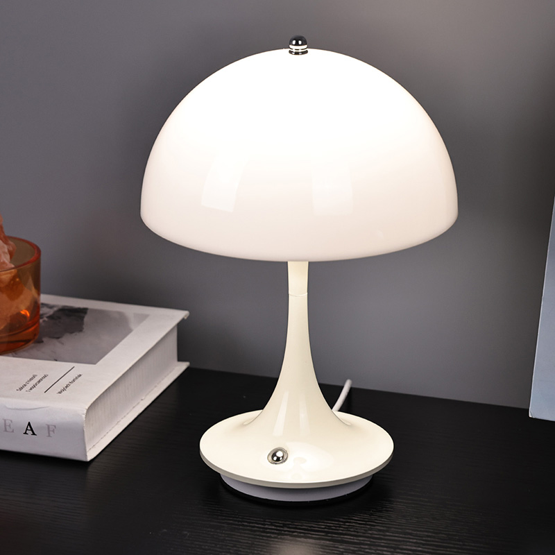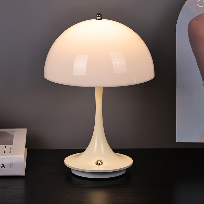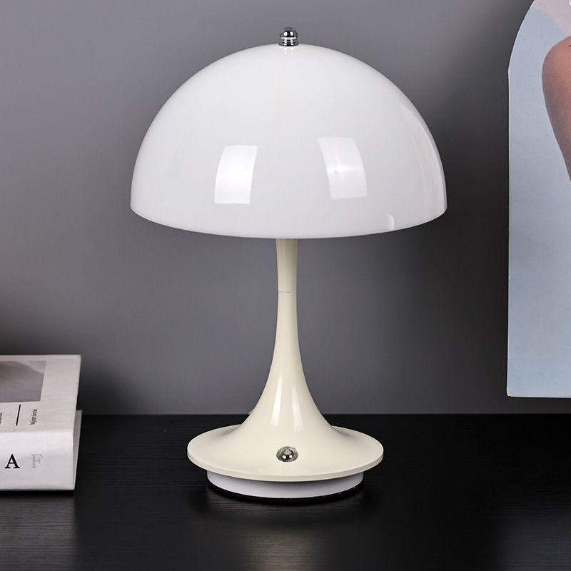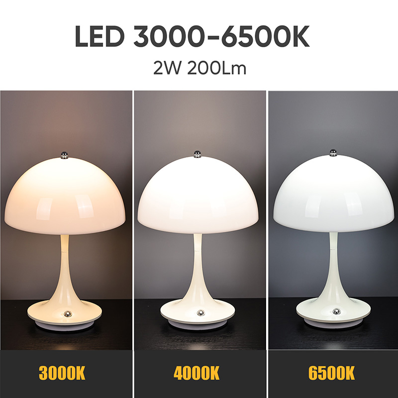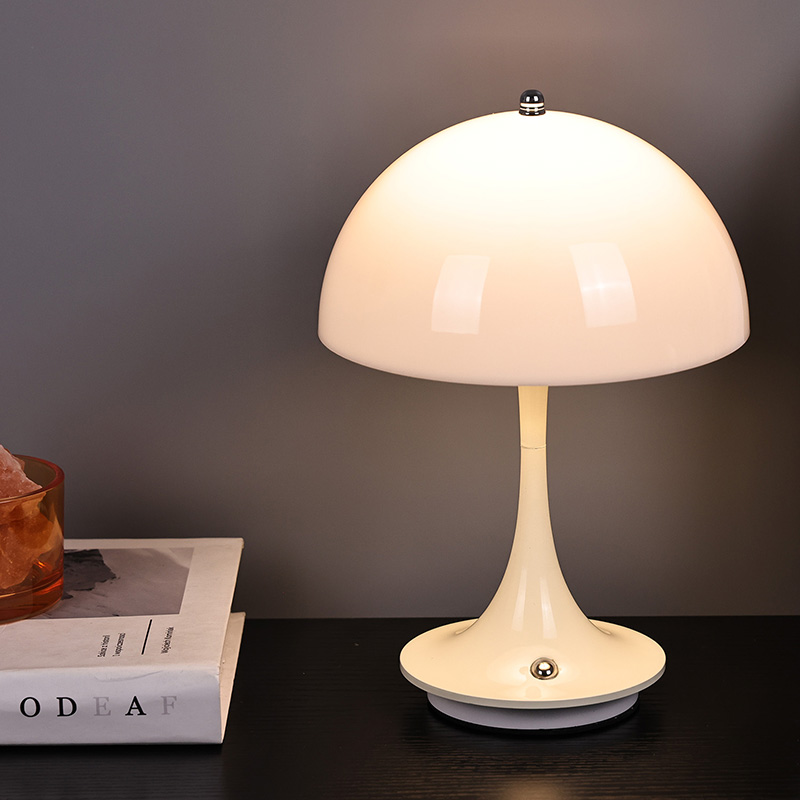 Roztomilé domácí LED lampy s houbovým stínidlem mají kovovou základnu a kovový sloupek lampy spolu s plastovým stínidlem. Povrch stínidla je voskovaný a hladký, s velmi dobrým omakem, připomínající houbu