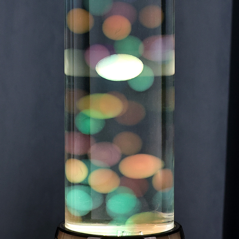 Vysoký, elegantní válcový tvar lampy jí dodává moderní, minimalistický vzhled, který doplňuje různé styly interiéru. Jeho průhledné tělo umožňuje plnou viditelnost vnitřních prvků, včetně plovoucích medúz a třpytivých odlesků světla. Kapalina uvnitř je speciálně navržena tak, aby simulovala proudění vody, čímž se zvyšuje realismus plovoucího pohybu. Jak LED diody mění barvy, zdá se, že medúzy pulzují životem a dodávají scéně hloubku a pohyb.