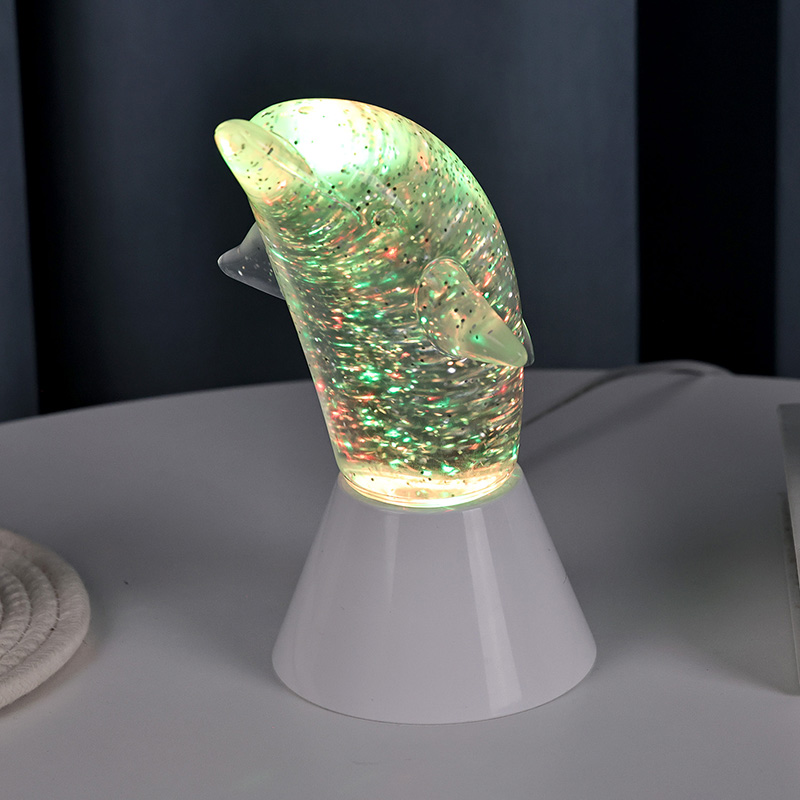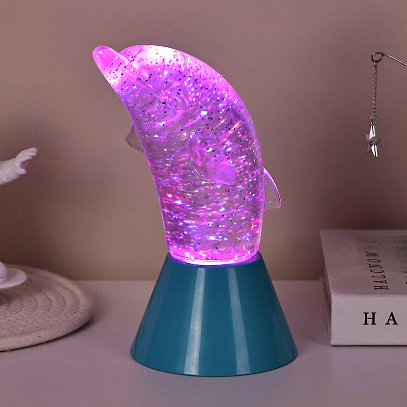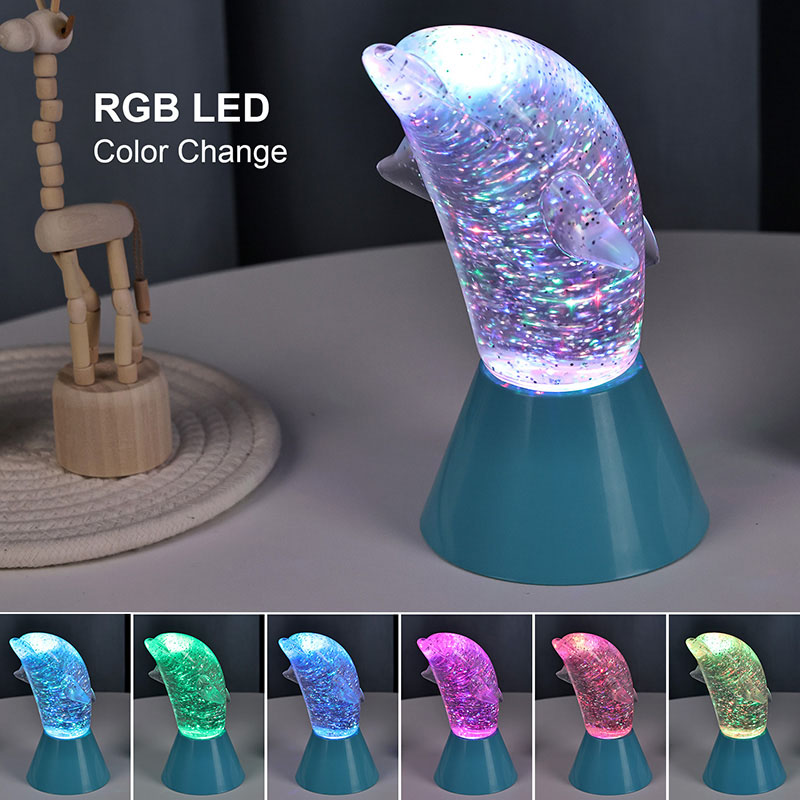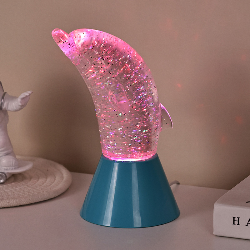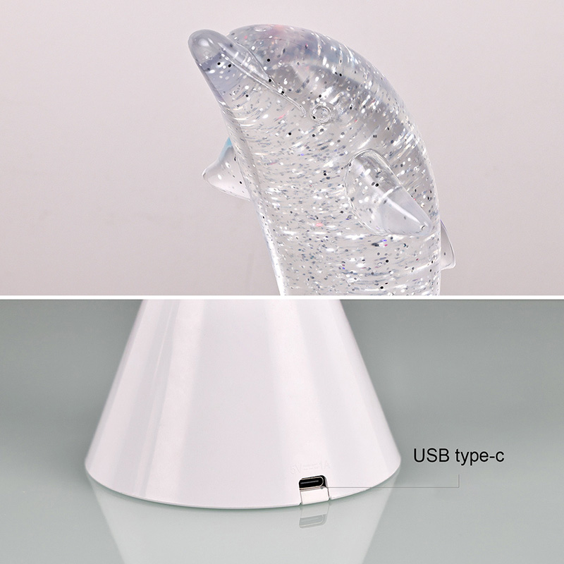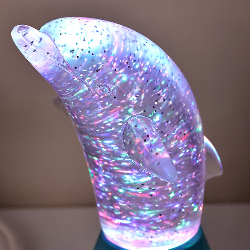 Dolphin Kid Gift Glitter RGB Nigh Light je navržen ve tvaru roztomilého delfína s hladkými liniemi a nádhernými detaily, které dokonale obnovují hbité držení těla delfínů. Uvnitř průhledné delfíní ulity ve tvaru flitrů Nepravidelné pohyby dokážou krásně odrážet barvy a vytvářet tak poklidnou a tajemnou atmosféru. Pokaždé, když se na tuto lampu podíváte, máte pocit, že jste v hlubokém oceánu Mezi nimi pociťte nekonečné kouzlo přírody Vybaveno pokročilou technologií osvětlení RGB měnící barvy, která vám umožňuje volně přepínat mezi více barvami. Ať už je to teplá oranžová, romantická růžová nebo klidná modrá,