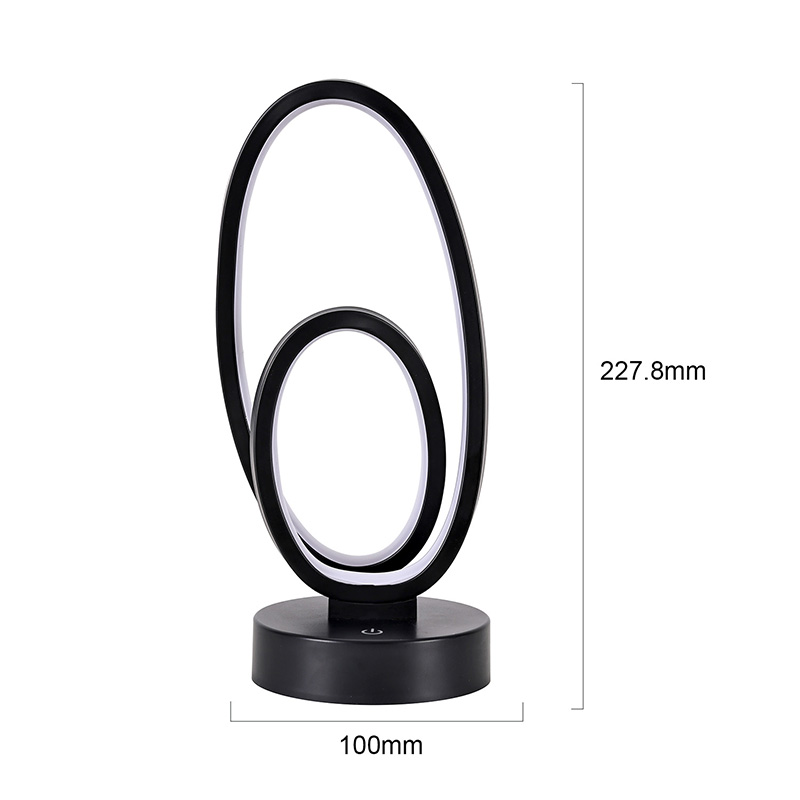 44*33*V23,5 cmStolní lampa RGB s dvojitým kruhovým stínítkem se vyznačuje dvoukruhovým designem s elegantními obrysy narýsovanými minimalistickými liniemi. Kombinace kovu a vysoce kvalitního plastu se může pochlubit výjimečnou texturou a jemným dotykem. Kromě toho, že je to osvětlovací nástroj