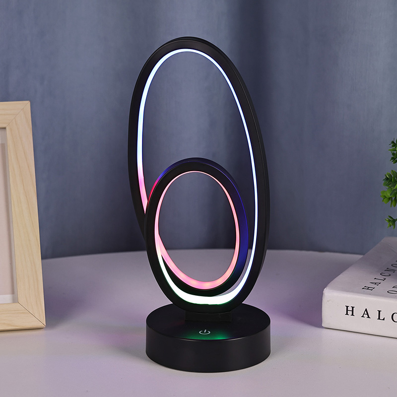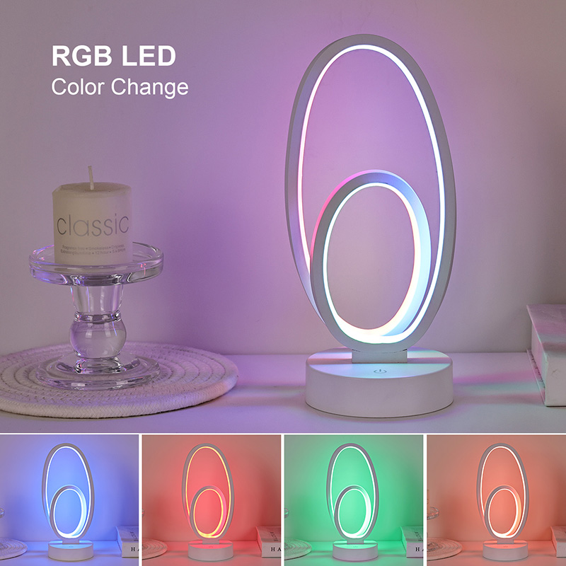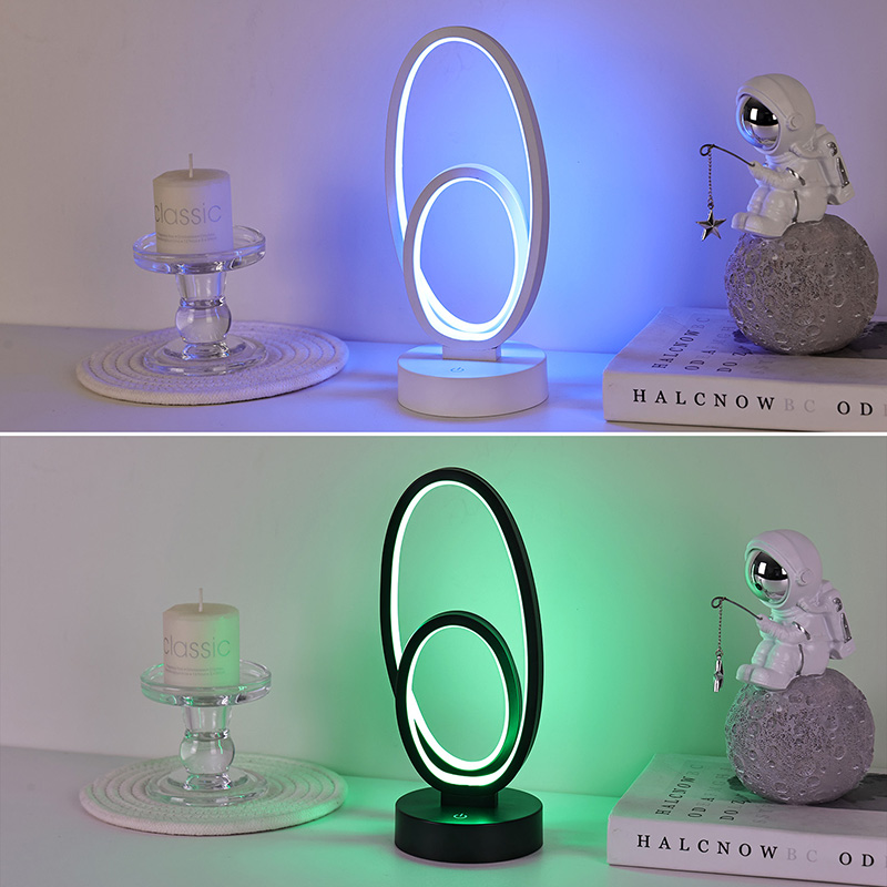 Stolní lampa RGB s dvojitým kruhovým prstencovým stínidlem je uměleckým akcentem pro domácí prostory a nabízí bezpečný nízkonapěťový zdroj DC pro stabilní a energeticky účinný výkon a zajišťuje bezpečné používání. Vhodné pro různé scénáře, jako jsou obývací pokoje, dětské pokoje, pracovny a ložnice