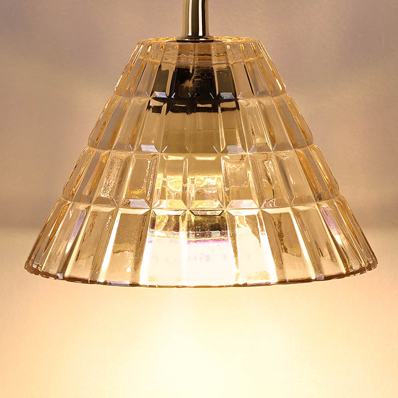 Stínidlo je vyrobeno z průhledného skla (akryl) a teplé barevné světlo je velmi vhodné pro čtení. Největší devizou stolní lampy Glass Shade s Adjust Hight je kromě jejího designu výškově nastavitelný sloup lampy s otočným tlačítkem a podle výšky lze nastavit i rozsah osvětlení.