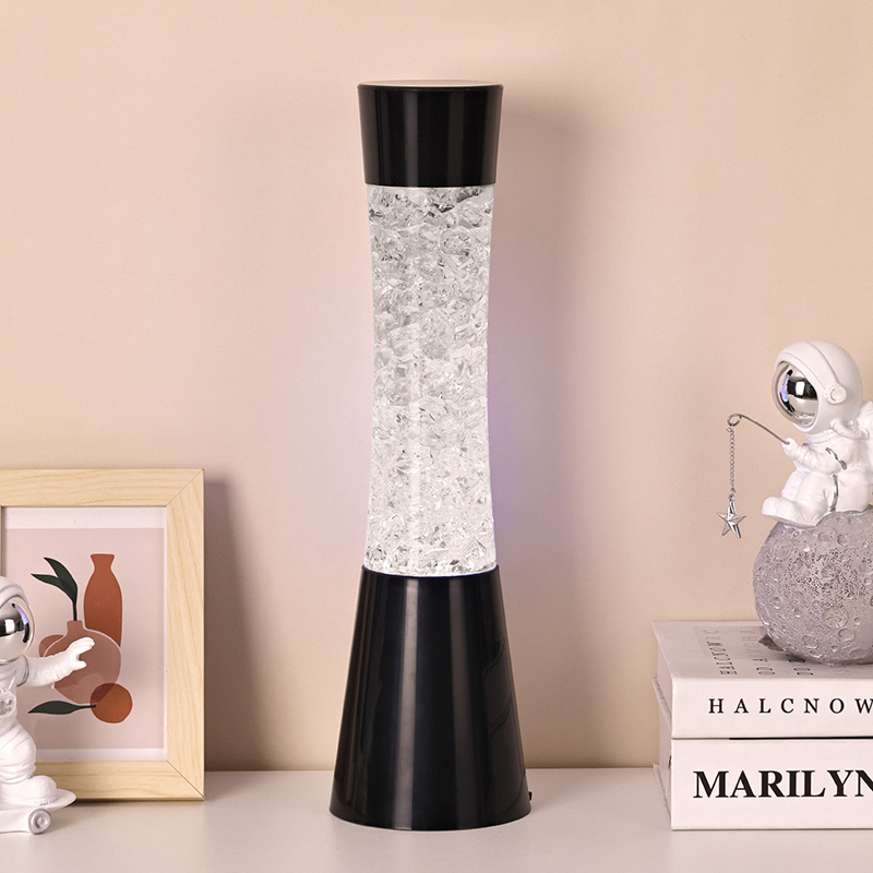 Led ICE lávová lampa s 3AAA baterií je vyrobena z vysoce kvalitních plastových a kovových materiálů, s dobrou stabilitou a odolností. Tělo plastové láhve bylo jemně leštěno a ošetřeno, výsledkem je hladký a jemný povrch s jemným leskem. Kovová základna dodává lampě stabilní a ušlechtilou texturu, díky čemuž je při používání stabilnější a spolehlivější.