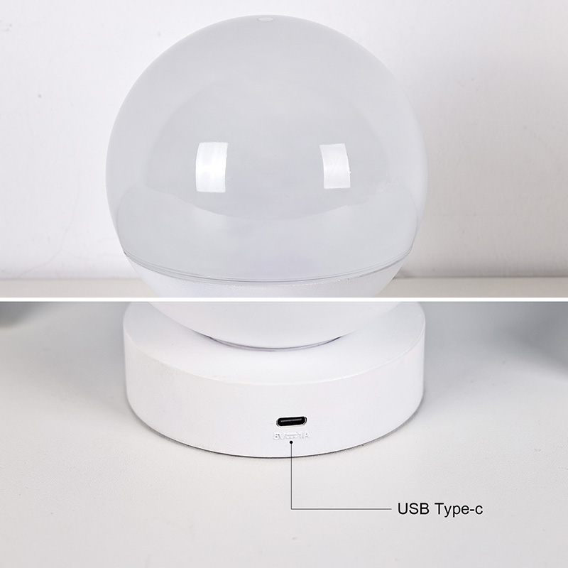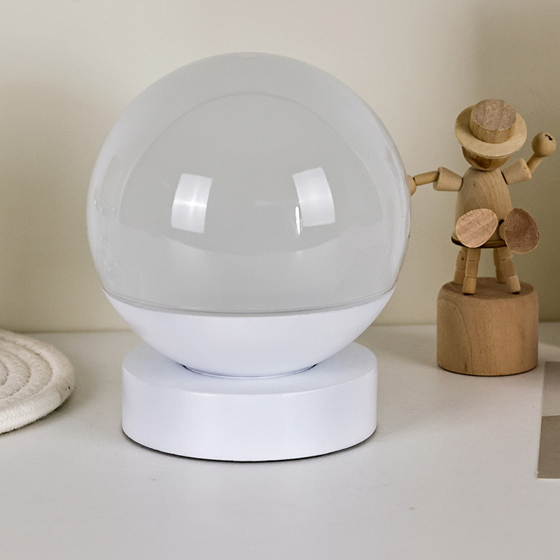 Celkový design se vyznačuje zaoblenou koulí, přičemž horní polovina je vyrobena z průsvitného matného materiálu, který vyzařuje měkké, jemné světlo. Spodní polovina se skládá z bílé základny pro stabilní podporu s čistými a hladkými liniemi. Jeho kompaktní velikost