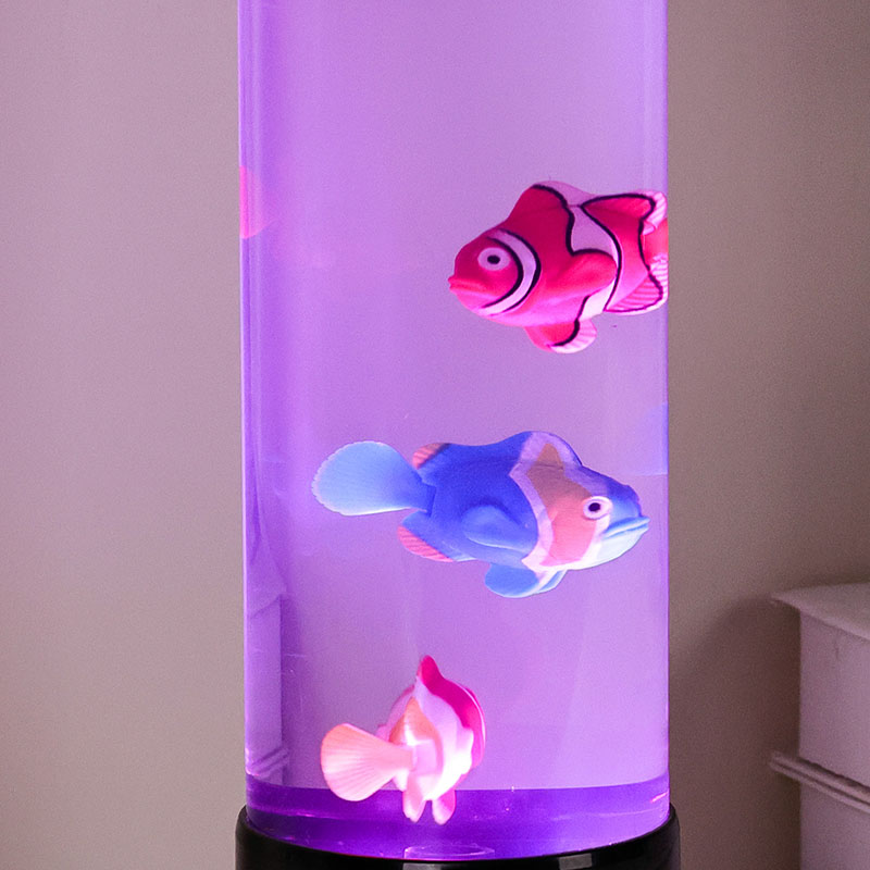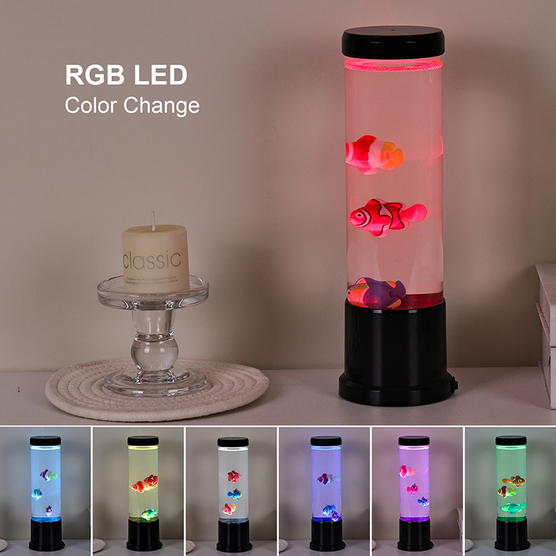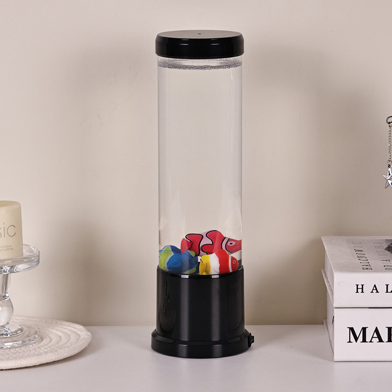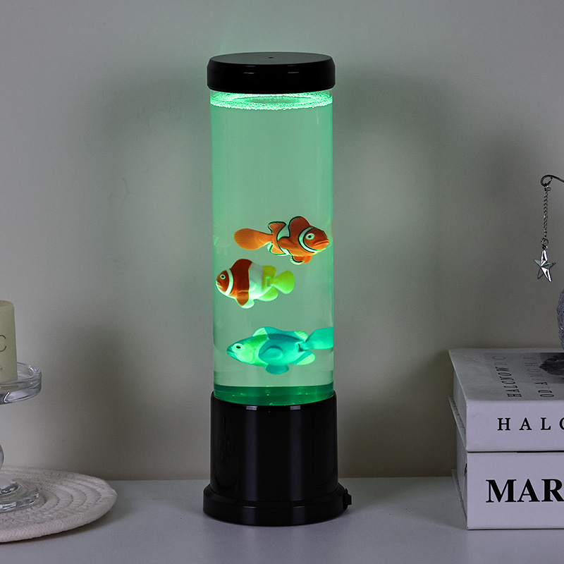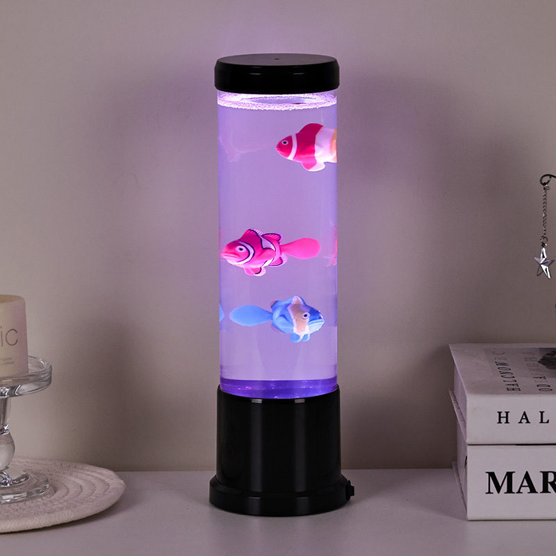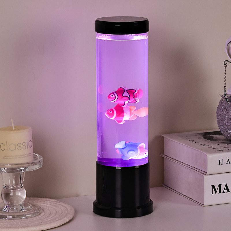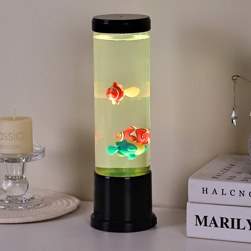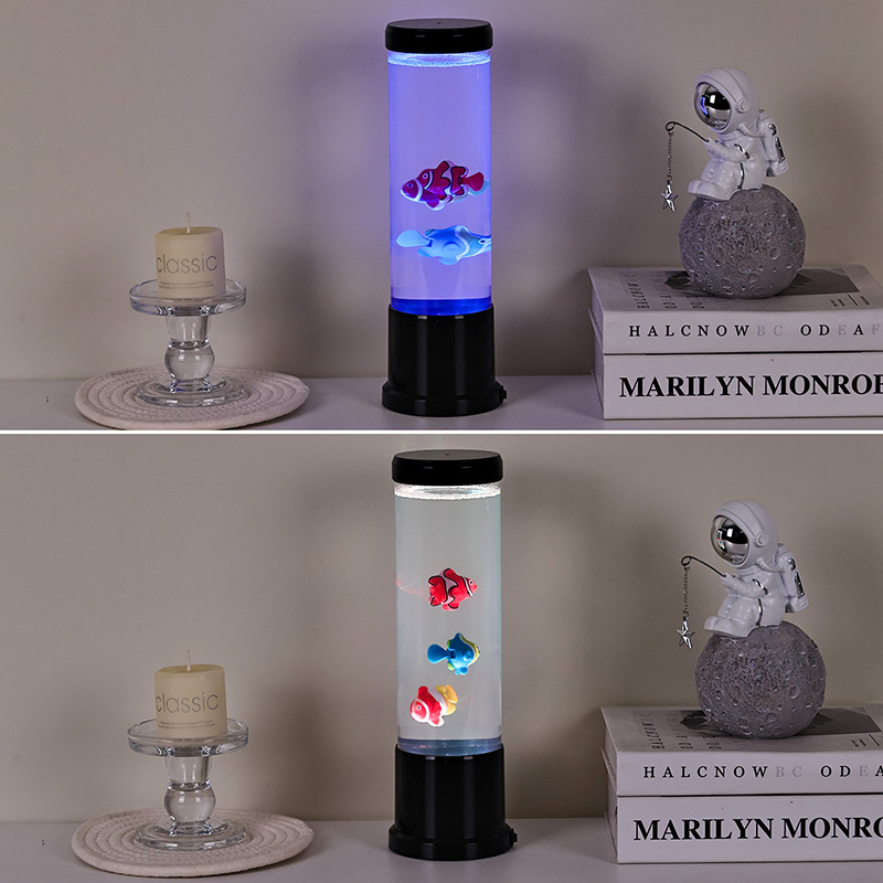 Srdcem této lampy je pečlivě vytvořená simulace skutečného akvária. Uvnitř průhledného sloupce najdete nádherně detailní, plovoucí rybí postavy – jako jsou živé klauny a další tropické druhy – které se jemně pohybují a plavou kapalinou podobnou vodě. Přidání zářící medúzy umocňuje magickou podvodní iluzi, jemně pulzující éterickým světlem. Kombinace pohybu a barev vytváří dynamickou scénu, která upoutá pozornost a přináší klid do vašeho prostředí.