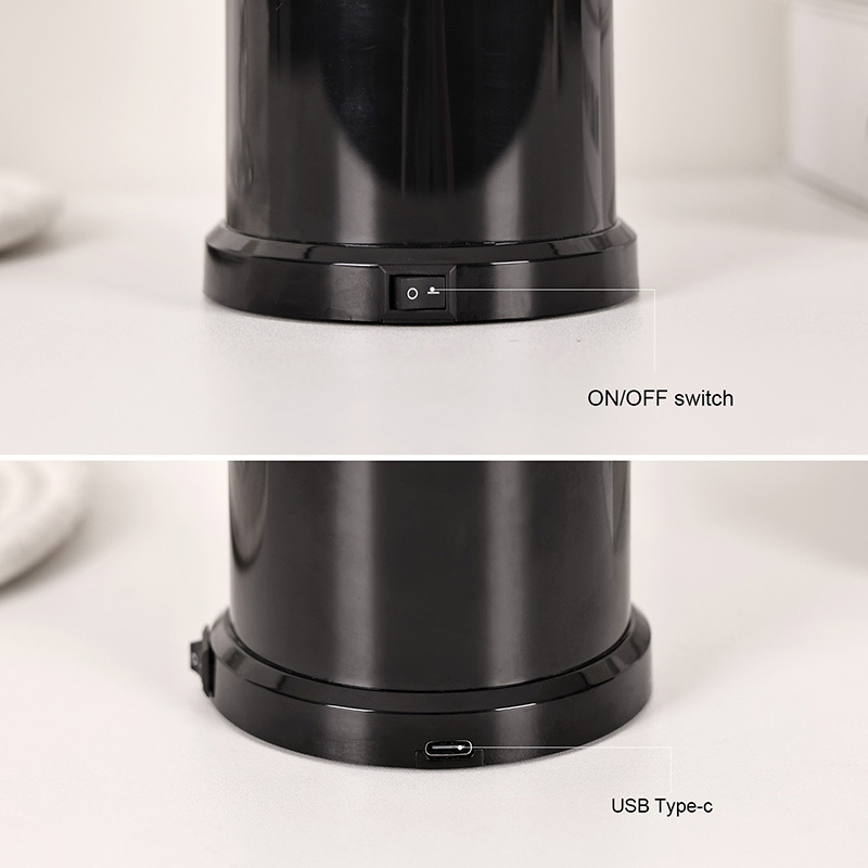 Tato vysoká černá lampa je vyrobena z vysoce kvalitního odolného plastu a má pevnou základnu, která zabraňuje převrácení a zajišťuje stabilitu na stolech, policích nebo nočních stolcích. Průhledná centrální trubka je odolná proti poškrábání a snadno se čistí, přičemž si zachovává průzračnost. Horní víko je bezpečně utěsněno, aby se zabránilo úniku, zatímco vnitřní součásti jsou pro bezpečnost zcela uzavřeny.