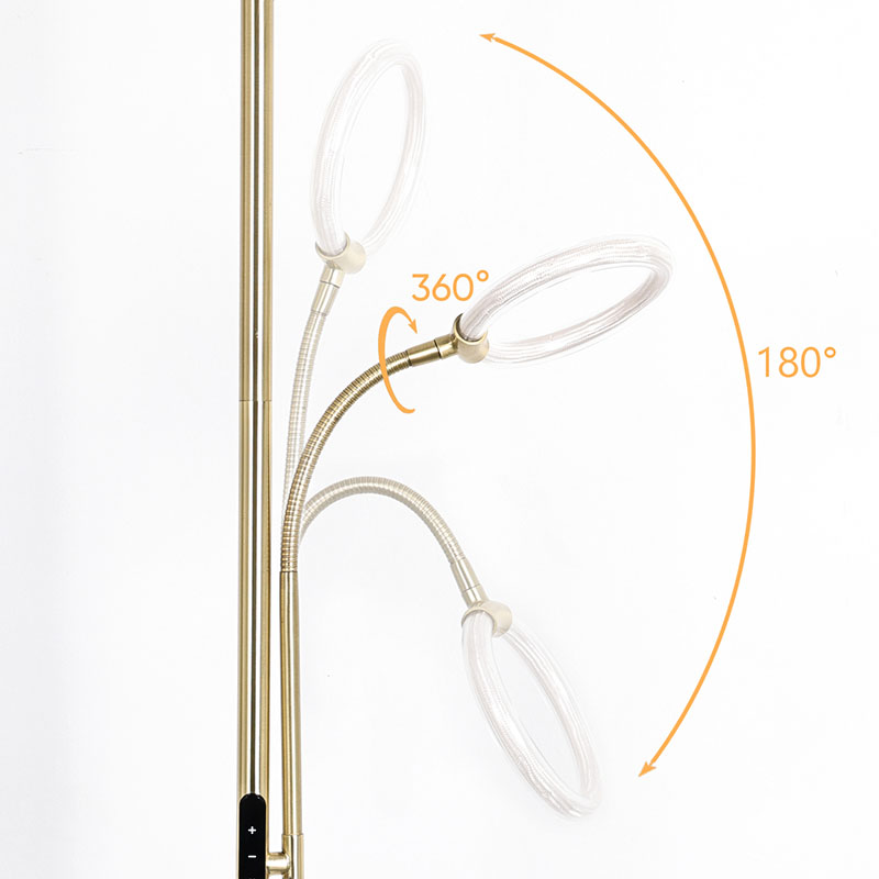 Luxusní zlatá stojací lampa do obývacího pokoje je vybavena pokročilou silikonovou trubicovou 360 stupňovou technologií osvětlení, která vydává měkké a rovnoměrné světlo a efektivně osvětluje celý prostor. Silikonové trubky mají dobrou flexibilitu a odolnost a mohou odolat různým podmínkám prostředí, aby byla zajištěna stabilita a bezpečnost