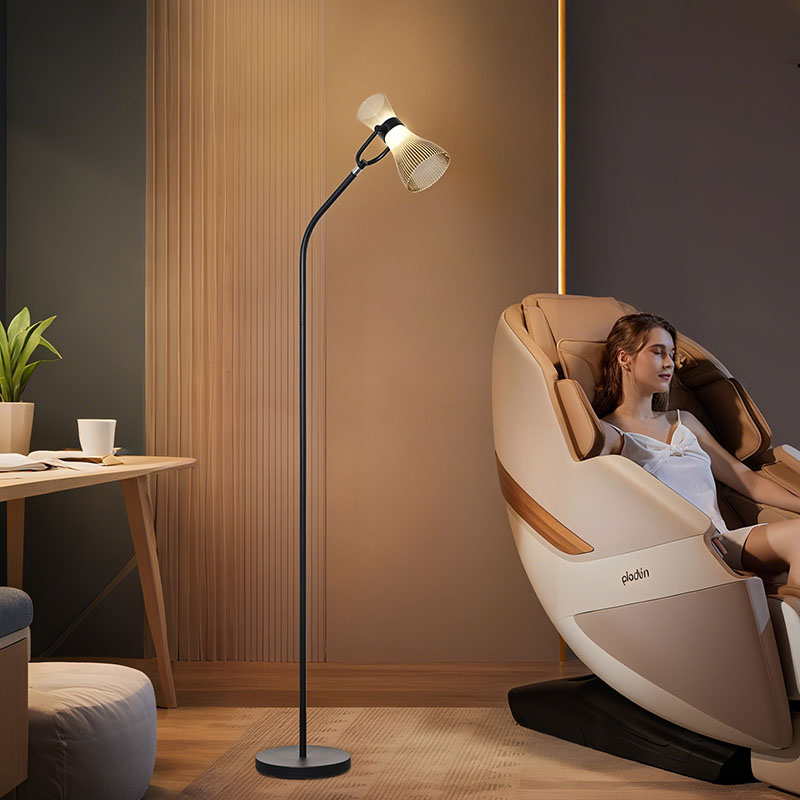 hladké a přirozené linie, představující ušlechtilou a elegantní atmosféru. Skleněné stínidlo dodává lampě nejen průhlednou a čistou texturu, ale také účinně rozptyluje světlo, díky čemuž je světlo měkčí a jednotnější. Ať už je umístěna v obývacím pokoji, ložnici nebo pracovně, moderní LED stojací lampa se skleněným stínidlem dokáže dokonale