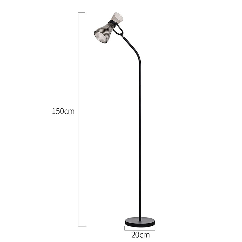 Nožní spínač stmíváníModerní stojací LED lampa se skleněným stínidlem má minimalistický designový koncept s jednoduchým, ale stylovým celkovým tvarem. Výška 150 centimetrů a průměr základny 20 centimetrů mu dávají dostatečnou přítomnost, aniž by zabíraly příliš mnoho místa. Kovová tyč a základna jsou jemně leštěné, s hladkým a jemným povrchem,