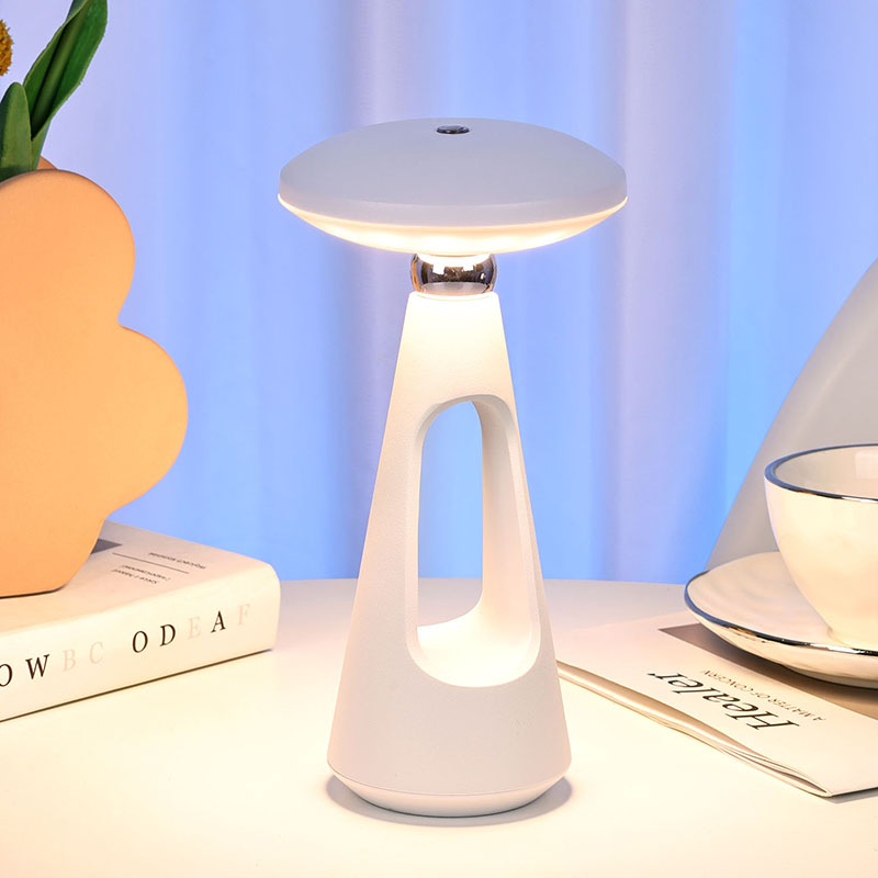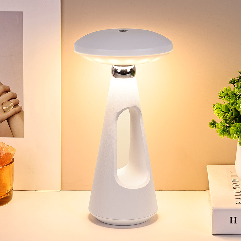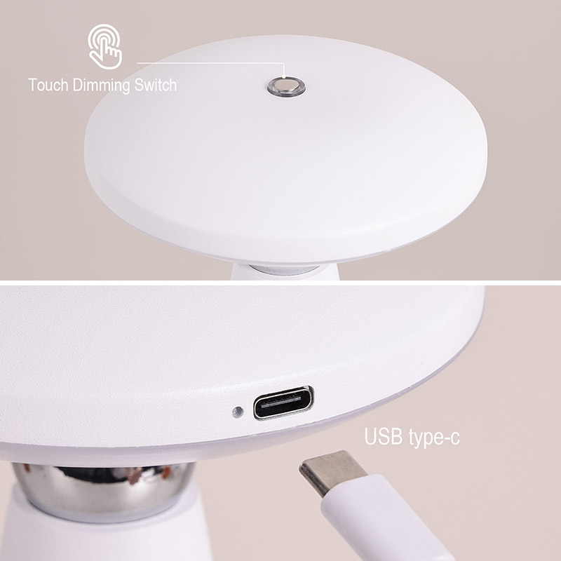 Dotkněte se přepínače stmíváníHoubová stolní LED lampa s dobíjecí baterií se svými jednoduchými a hladkými liniemi a ergonomickým tvarem, hřibovitým designem s jehlovým ocasem a kovovou stolní LED lampou s teplým světlem, není jen praktickým nástrojem osvětlení,