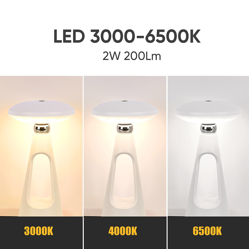 Stolní LED lampa Mushroom s dobíjecí baterií je vybavena pokročilým LED světelným zdrojem, který vyzařuje měkké teplé světlo a dokáže nastavit intenzitu světla. Nekonečné stmívání může účinně chránit vaše oči. Prostřednictvím jednoduchých operací