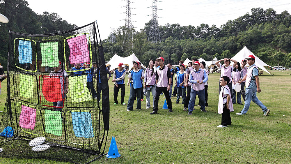 Projekt pět: Frisbee Nine Palace Grid 🥏 Pravidlo: Hoďte frisbee ze vzdálenosti 3 metrů, sestřelte Devítku mřížky a získejte 3 šance na osobu. Nasbírejte vysoké skóre, abyste vyhráli. Čas: 20 minut. Highlight: Soutěž přesnosti versus štěstí!