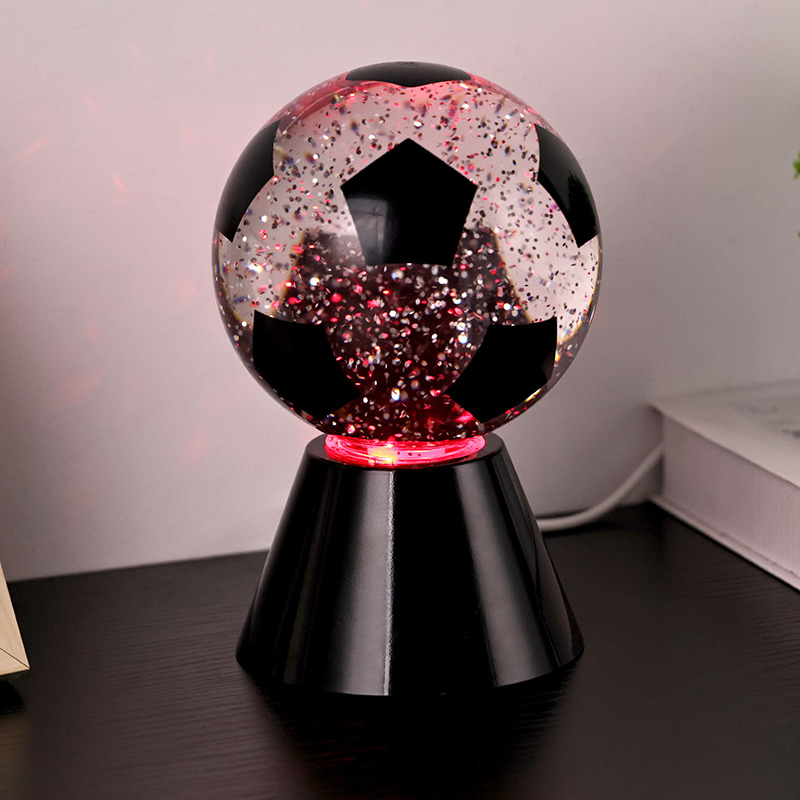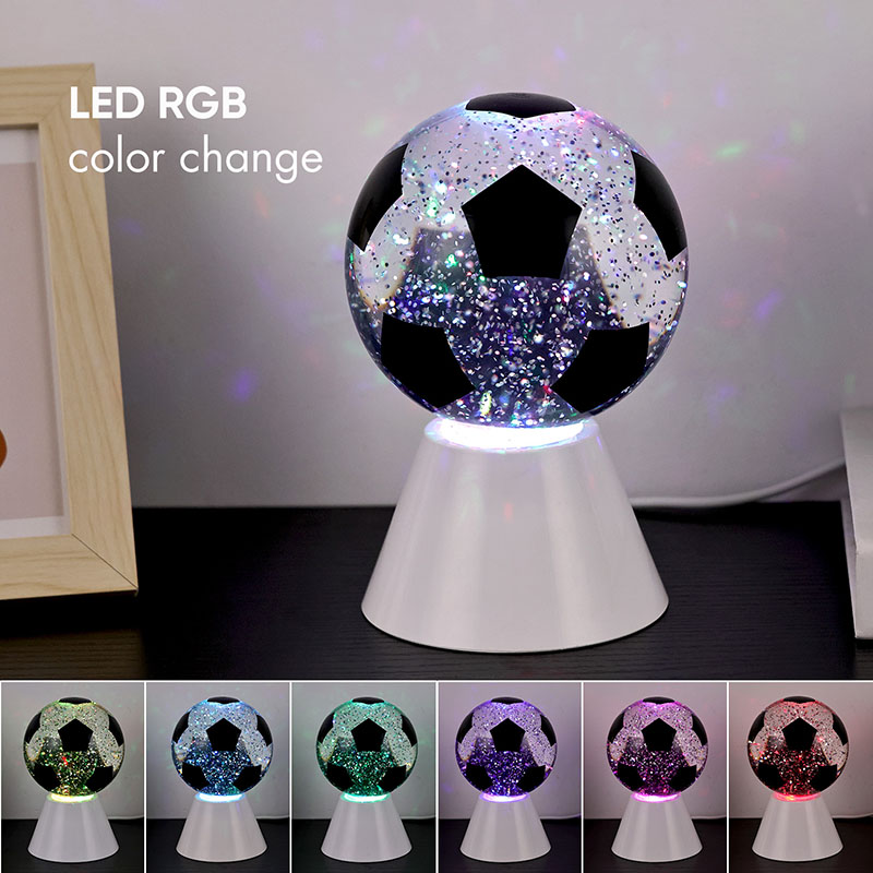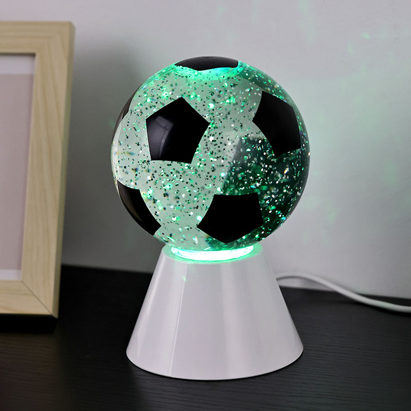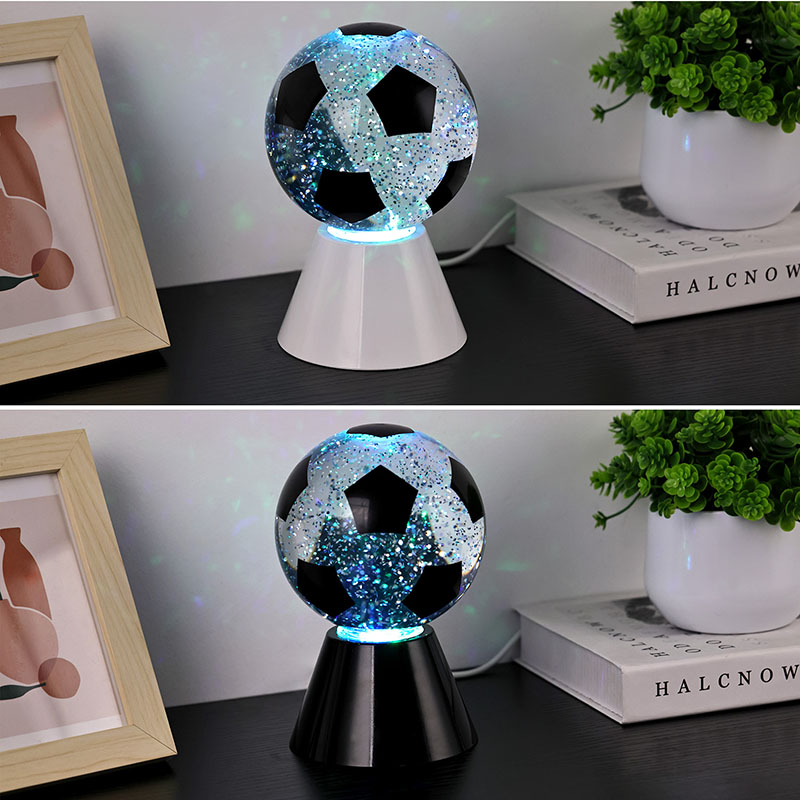 Bílá + změna barvy LEDKulové dárkové světlo se skládá z horního skla a plastové základny. Skleněná plocha je potištěna fotbalovými vzory, které lze potisknout různými barvami. Hlavním rysem Night Light with Football Shade je, že uvnitř koule je tekutina, která obsahuje flitry. Po zapnutí spínače začne pracovat vestavěný malý motor a kapalina uvnitř sklenice se bude pohybovat nepravidelně. Zároveň se začne měnit spodní světlo Night Light with Football Shade, což je moc krásné. Noční světlo s fotbalovým stínidlem se používá hlavně pro výzdobu interiérů, v pokojích, obývacích pokojích, hotelových pokojích a dalších místech, produkt je také dodáván s nabíjením USB a může používat 3 baterie AAA.