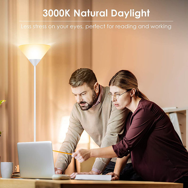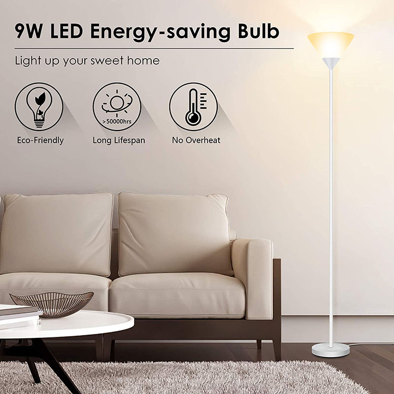 podlahový kryt lampy s 9W úspornou LED žárovkou. Žárovka produktu svítí nahoru, aby neoslňovala a chránila vaše oči.