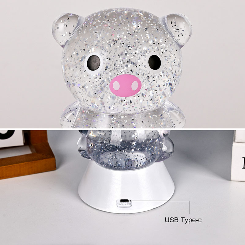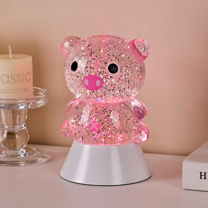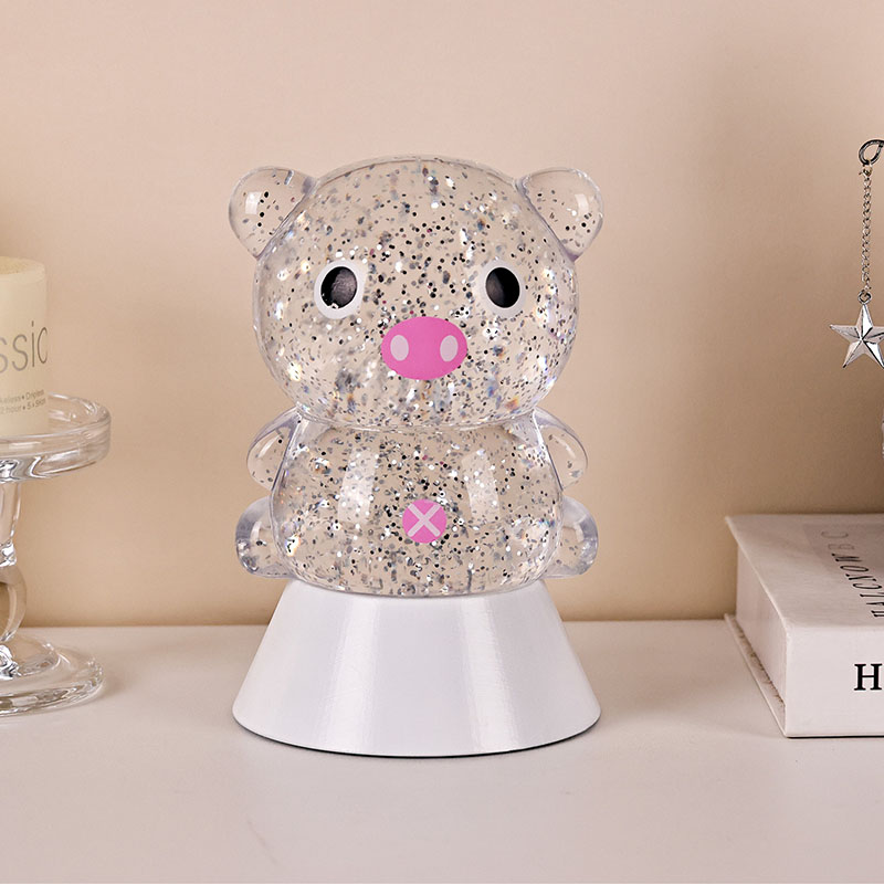 Plast a elektronikaZa útulné noci může rozmarné a kouzelné noční světlo vnést do dětského pokoje nekonečné teplo a fantazii. Toto dekorativní noční světlo ve tvaru „Dreamy Pig“, inspirované rozkošným kresleným prasečím designem, kombinuje dynamickou technologii měnící kapalinu s jiskřivými efekty a vytváří tak kreativní produkt domácího osvětlení, který spojuje zábavu, estetiku a praktičnost. Je ideální volbou do dětských pokojů, ložnic, na psací stůl, nebo jako dárek k svátku.
