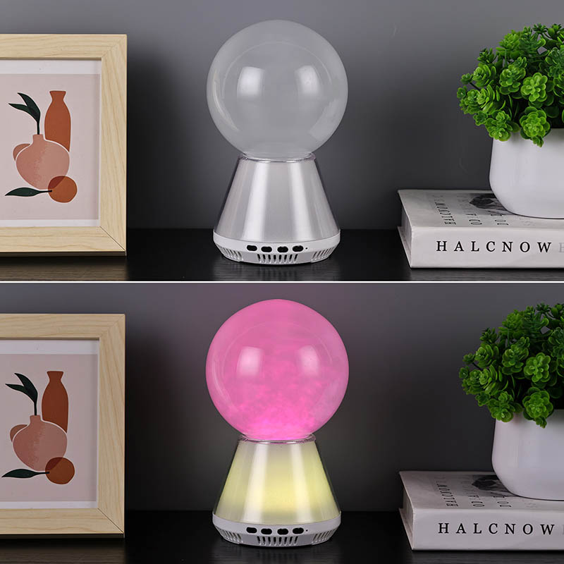 RGB LED třpytivá lampa s ovládáním bluetooth, která kombinuje proudění kapaliny ve skleněné kouli do stavu podobnému mraku, synchronizované změny barev mezi základnou a kapalinou a připojení Bluetooth pro přehrávání hudby, je navrženo tak, aby pro vás vytvořilo snový svět. RGB LED třpytivá lampa s bluetooth ovládáním je nejen praktické noční světlo, ale také kouzelné umělecké dílo.