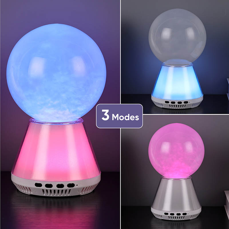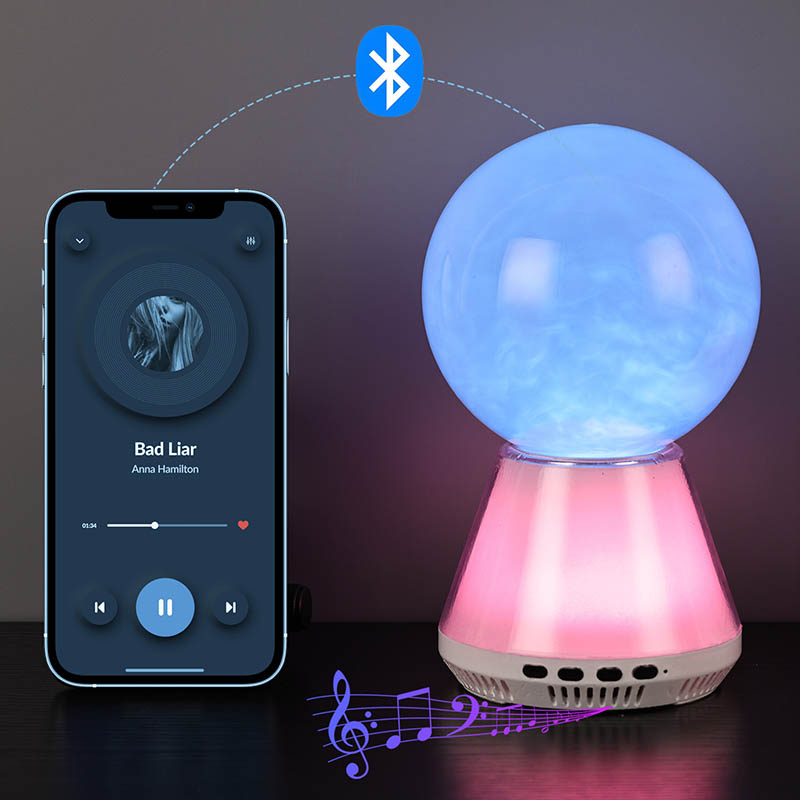 Hlavní předností RGB LED třpytivé lampy s bluetooth ovládáním je její jedinečný design skleněné koule. Vnitřek skleněné koule je naplněn tajemnou tekutinou. Když je lampa zapnutá, kapalina pomalu proudí dovnitř koule a vytváří snový efekt mraku. Zdá se, že tyto mraky a mlha padají z nebe,