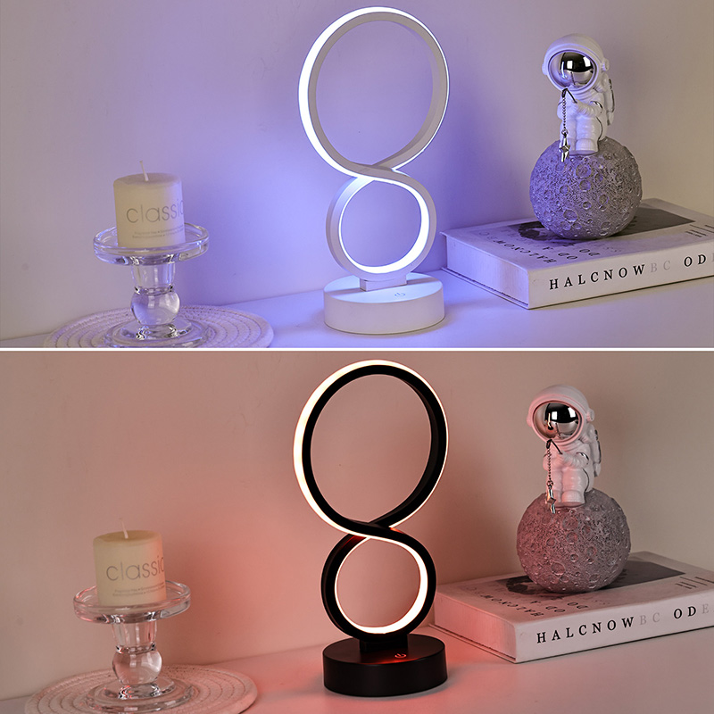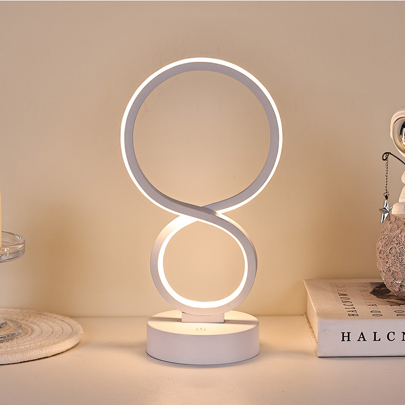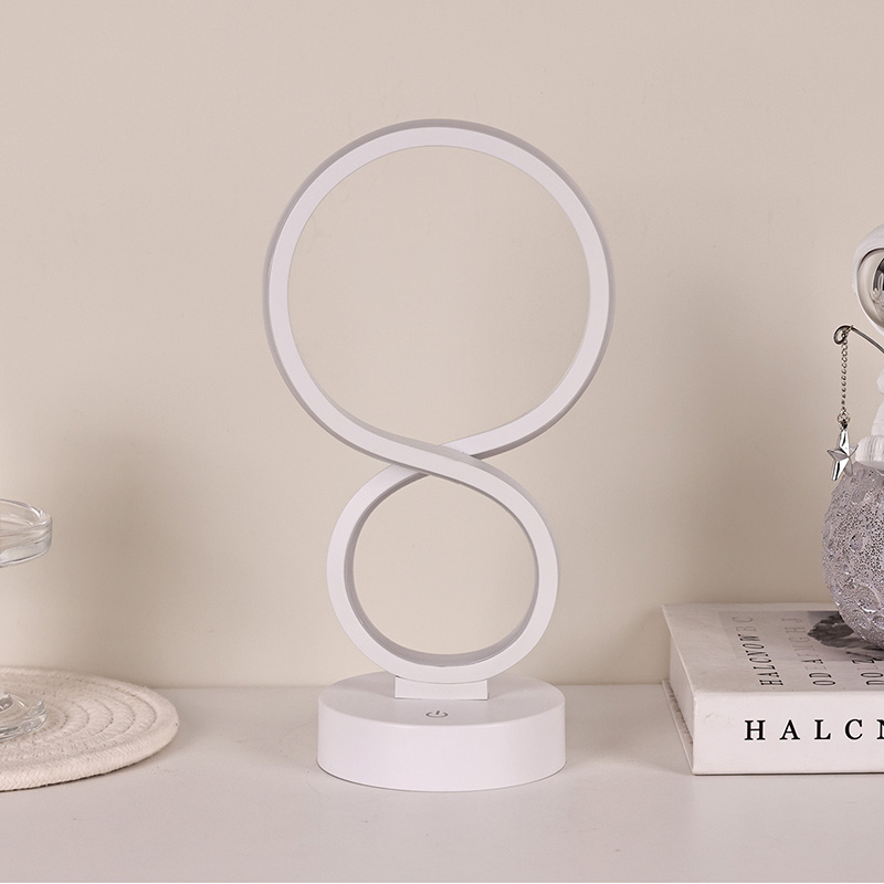 Hladké linie, inspirované symbolem nekonečna, symbolizujícím krásu věčnosti a oběhu, nastiňují elegantní siluetu ve tvaru 8. Kombinace kovu a vysoce kvalitního plastu vytváří jemnou texturu s hřejivými chapadly. Ať už je umístěn v ložnici, u postele, v rohu pracovního stolu nebo v rohu obývacího pokoje, je to pozoruhodná krajina, která dodává domovu moderní uměleckou atmosféru.