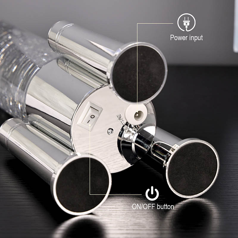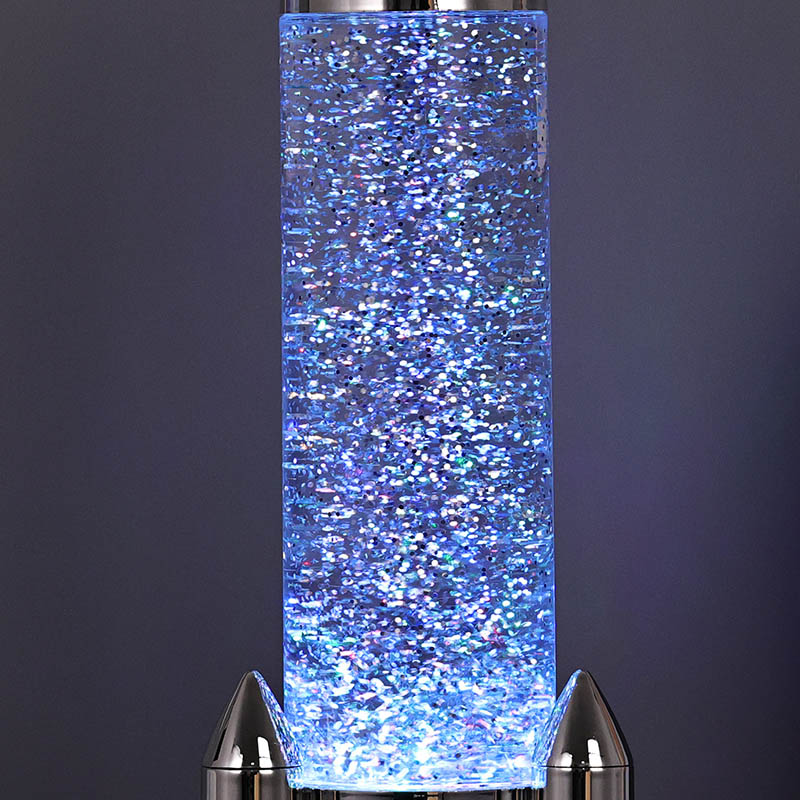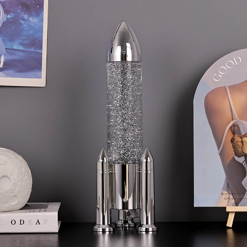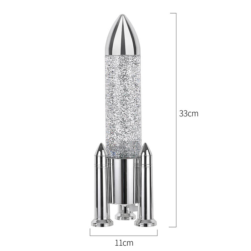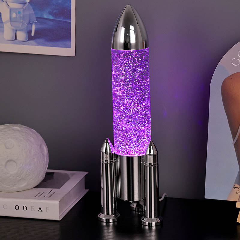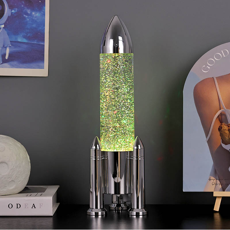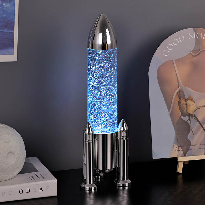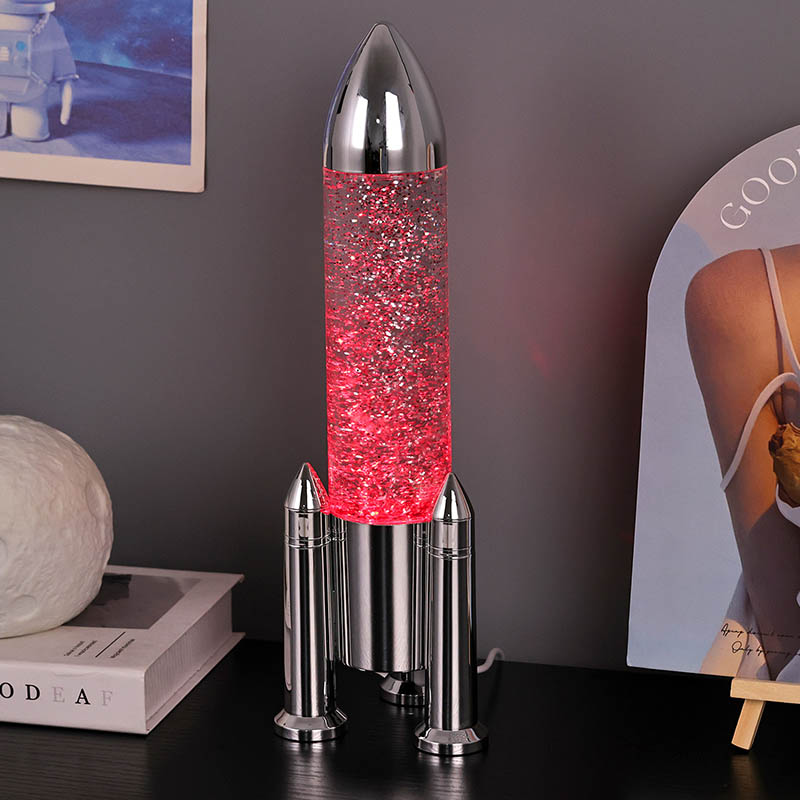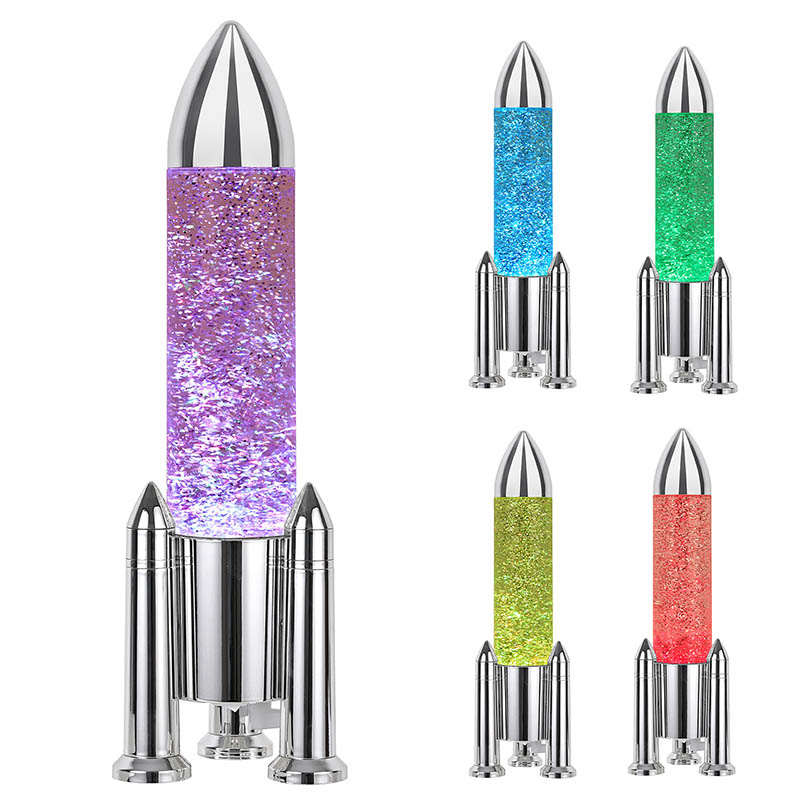 Chromované prvky lampy mu dávají leštěný zrcadlový povrch, který odráží světlo a zvyšuje jeho vizuální přitažlivost. Raketova špičatá vrchol a detailní základna napodobuje estetiku skutečných raket, což z něj činí jedinečný vrchol, který nakreslí komplimenty a obdiv. Tato pokročilá funkce umožňuje lampě hladce přecházet pomocí spektra barev a vytváří neustále se měnící a fascinující displej. Od tepla červené po čerstvost zelené, klid modré a každý odstín mezi tím nabízí nekonečný vizuální zážitek.