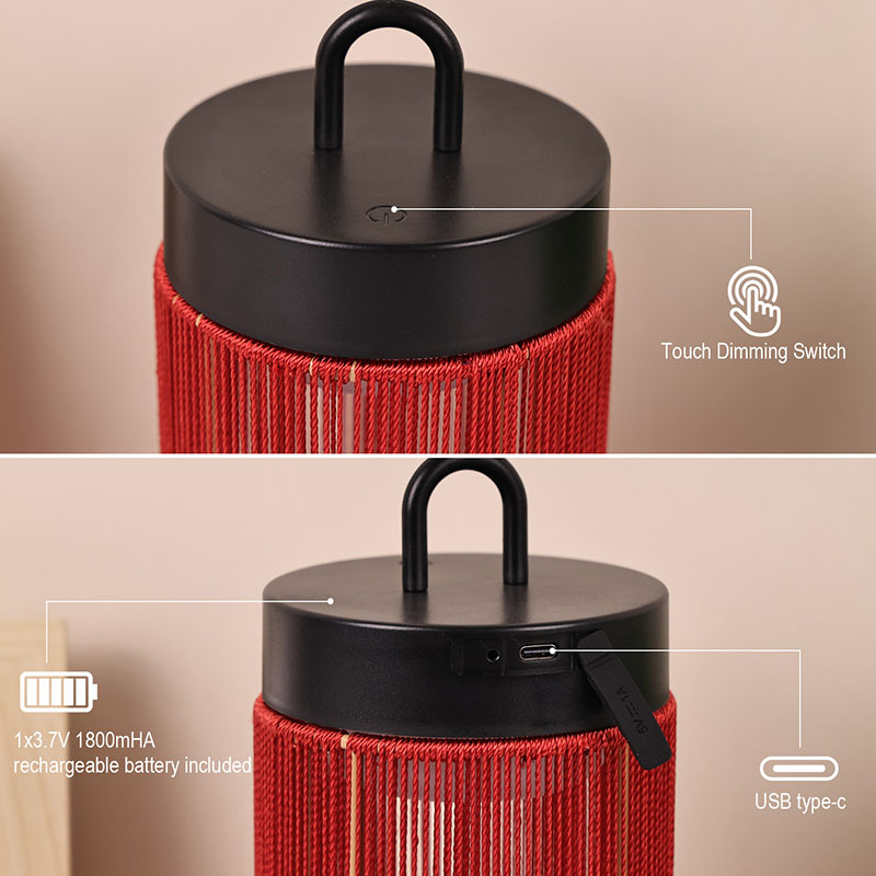 Celkový design: Speciální led stolní lampa s nylonem ve tvaru válce s jednoduchými a hladkými liniemi má moderní minimalistický styl. Speciální LED stolní lampa s nylonovým tvarem je při umístění stabilnější a také vhodná pro pohyb v ruce. Barevné sladění: Hlavní část je jasně červená, což lidem poskytuje hřejivý a živý vizuální zážitek, což je snadné