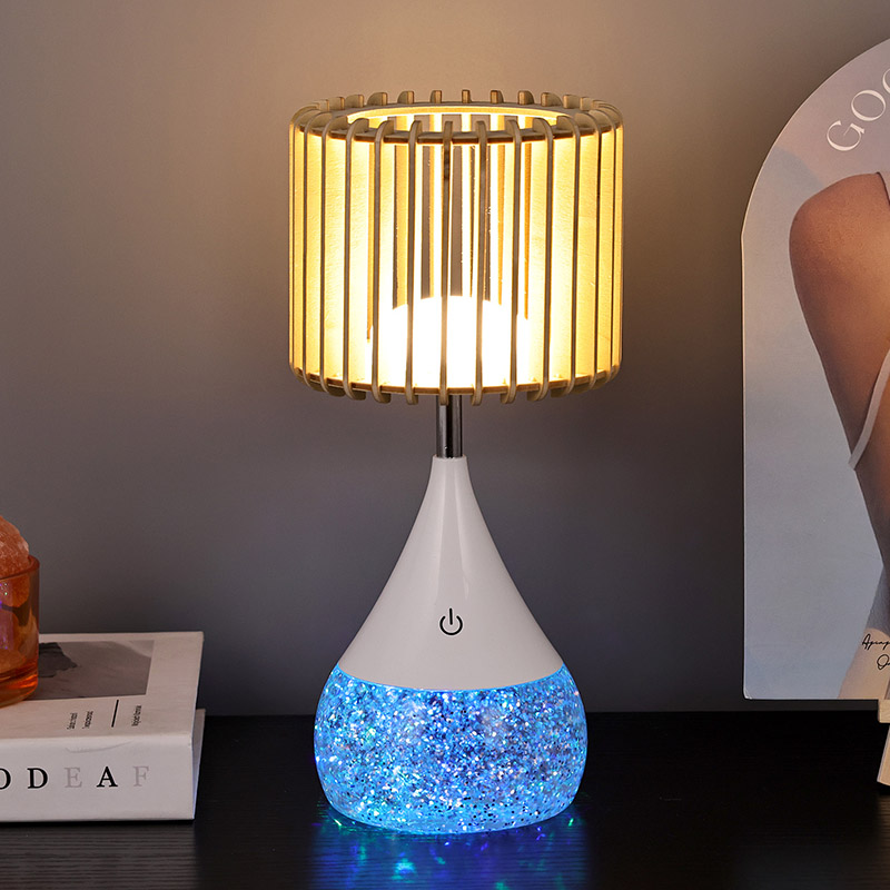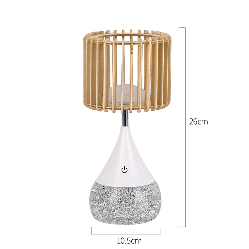 Precizně vyrobená LED stolní lampa New Design má elegantní a elegantní design vyrobený z odolných plastových materiálů. Stínidlo je vyrobeno z lamel z přírodního dřeva a vytváří vizuálně výrazný a moderní vzhled. Ať už ji umístíte na stůl, noční stolek nebo jakýkoli jiný povrch, tato lampa jistě zaujme a potěší.
